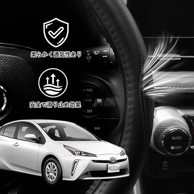 【適合車種】トヨタ に適用 プリウス 対応 【適合型式・年代】①50系(2015.12~2023.1) ②40系(2011.5~2021.3) ご注意:年式とグレードによって形状が異なる場合がございます。お車と形状をご確認の上ご購入ください。 ※以下の車種には適合しません:プリウス 60系、GR-86、BR-Z(35cm~36.4cm のステアリングホイールには非対応)。