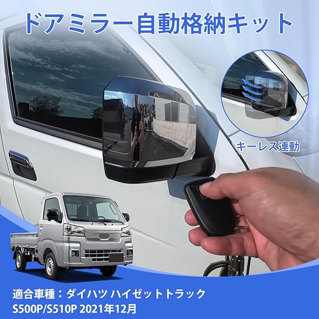 適合車種:ダイハツ ハイゼットトラック S500P/S510P;年式:2021年12月~;;セット内容:商品本体*1、配線*1、取付説明書*1、エレクトロタップ*3。※純正のキーレス連動ドアミラーメモリーには対応していません。微細な変更などにより互換性がない場合があります。ご購入前に、車側のメモリースイッチ背面のコネクター形状とピン数をご確認ください。
