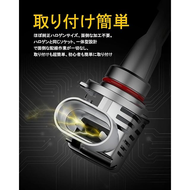 【高輝度&取り付け簡単】9005 LEDヘッドライトは両面抜群の視認性高品質LEDチップ搭載採用して、ハロゲンより50%省エネなのに300%明るさUP!超輝度で、ハロゲンより大幅に視認性を高めています。夜間の走行が非常に楽になり、安全に運転しています! まるで純正ハロゲンをそのまま交換しているような装着感を実現、簡単ポン付けで装着が更に楽になりました。
