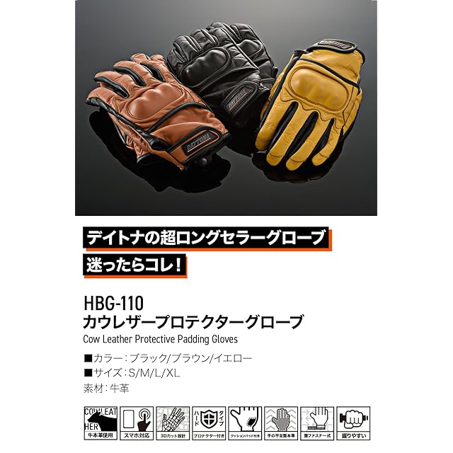 商品名:デイトナ(Daytona) バイク グローブ 革(牛革) 春夏秋冬 ハードプロテクター スマホ対応 カウレザー プロテクターグローブ HBG-110 ブラウン XLサイズ 17758
