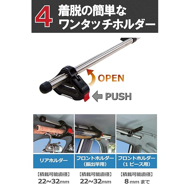 ルーフサイドの片側に装着する2~3本用の手軽なロッドホルダー!