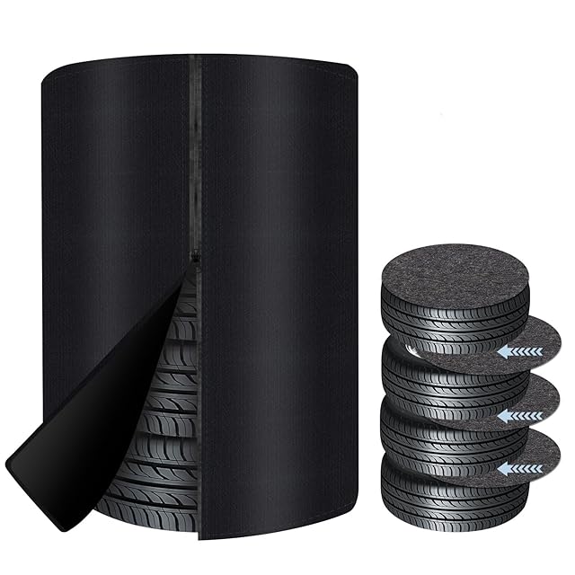 【高品質素材&しっかり保護】タイヤカバーには厚手で耐久性に優れた600Dオックスフォード生地を採用。裂けにくく、長期間使用可能です。内側は柔らかい裏地付きで、着脱時にタイヤへ傷がつくのを防ぎます。雨・雪・紫外線・ホコリなどからタイヤをしっかり守り、屋外保管にも最適です。さらに、直径60cmのフェルトパッドが4枚付属しており、タイヤを重ねて収納する際、間や上部に挟むことで、ホコリ・擦れ傷からしっかりガードします。