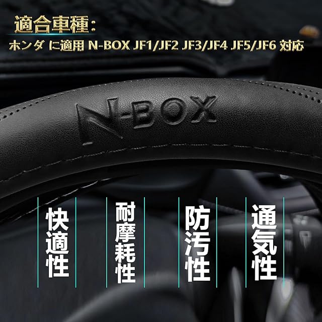 ElitingCar ホンダ に適用 N-BOX JF1/JF2 JF3/JF4 JF5/JF6 対応 ハンドルカバー 高級本革 ステアリングカバー おしゃれなデザイン 透湿性あり 耐摩耗性 防水仕様 汚れ防止 滑り止め 通気性優れ3Dグリップ 専車ロゴ オールシーズン対応 耐老化性強化 簡単取付 内装パーツ 車パーツ ドレスアップ 円形 ブラック 1pcs(37.5 センチメートル)