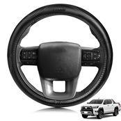 ElitingCar トヨタ に適用 ハイラックス Hilux GUN125 対応 ハンドルカバー 2017.9~現行 高級本革 ステアリングカバー おしゃれなデザイン 透湿性あり 耐摩耗性 防水仕様 汚れ防止 滑り止め 通気性優れ3Dグリップ 専車ロゴ オールシーズン対応 耐老化性強化 簡単取付 内装パーツ 車パーツ ドレスアップ 円形 ブラック 1pcs(37.5 センチメートル)
