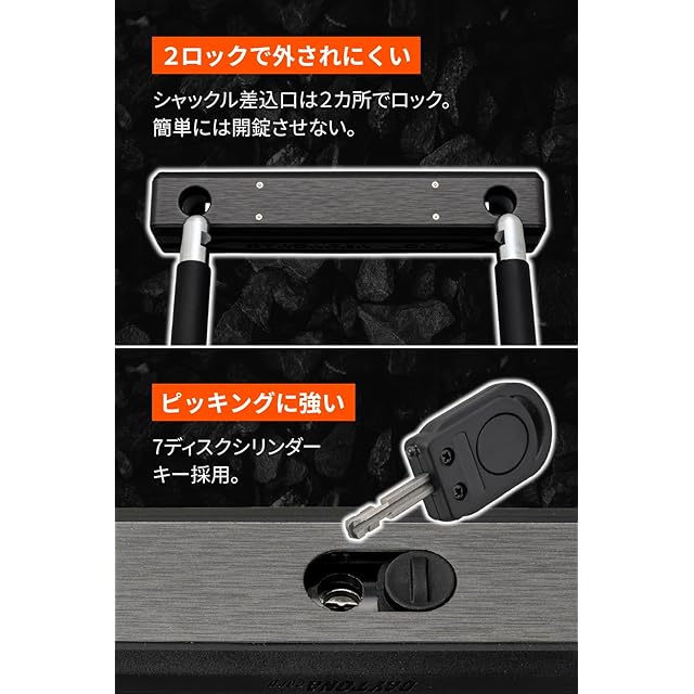 商品名:デイトナ(Daytona) バイク U字ロック φ16mm タイヤロック可能な154mm幅 鍵穴シャッター LEDライト付き鍵 ストロンガーU字ロック W154/H120mm 32696