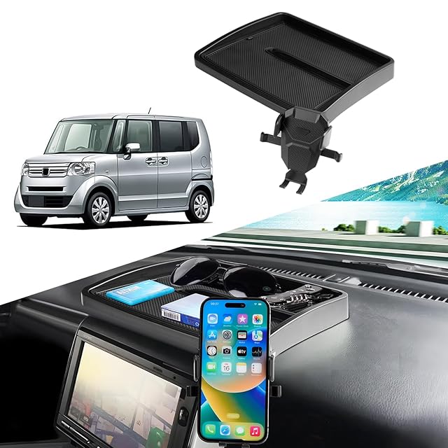 Auto Spec ホンダ N-BOX JF1 JF2 に適合 ダッシュボードトレイ 車内収納ボックス NBOX 2011年- 2017年 3Dトレイ 携帯ホルダー スマホホルダー付き 360度回転 小物入れ 車種専用設計 内装 パーツ 滑り止めラバーマット付き 収納アクセサリー 装着簡単 メーカー直営