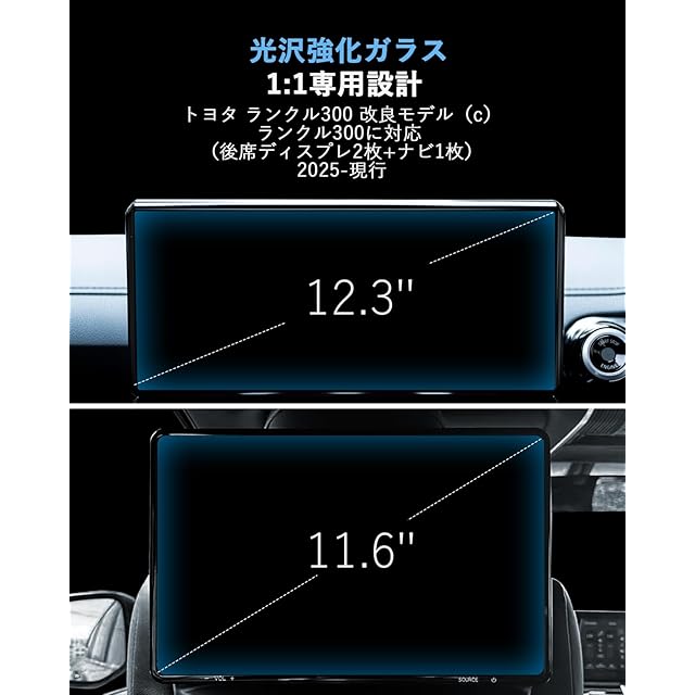 商品内容:12.3インチナビ + 11.6インチリア2枚(ランクル300 MC後)ガラス製