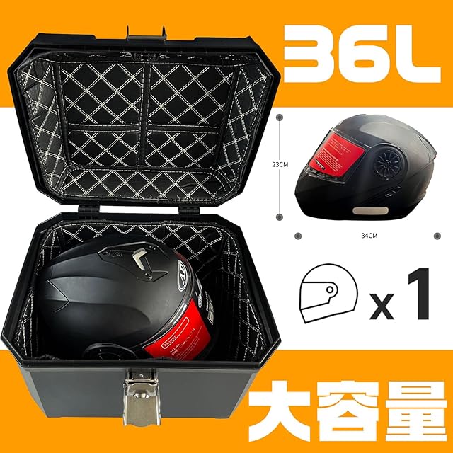 商品名:WAITREEバイク リアボックス トップケース オートバイボックス 36L 大容量 原付ボックス ダイヤルロック バックレスト付き 軽量 取付ベース付 簡単脱着 四角型 ブラック ヘルメット収納 ツーリング キャンプ 通勤対応