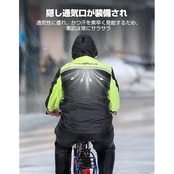 【高視認性の反射材】レインコートの胸部と背部には高視認性の反射ストリップが取り付けられており、夜間サイクリングする人々の安全を守ることができます。雨天時の夜間において反射ストリップは車のライトや街灯を反射し、着用者の視認性を大幅に向上させ、事故のリスクを減少させます。また、この素材は独特な光沢感があり、着用者に洗練さや魅力をプラスしてくれます。