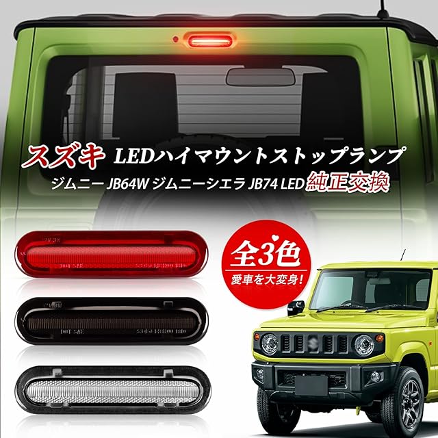 【3色レンズカラー】弊社のジムニー ブレーキランプは豊富なカラーのバリエーション、レッド、スモーク、クリアでお好みのカラーで愛車を簡単ドレスアップ!愛車を大変身❣【適合車種タイプ】ジムニー JB64W ジムニーシエラ JB74汎用