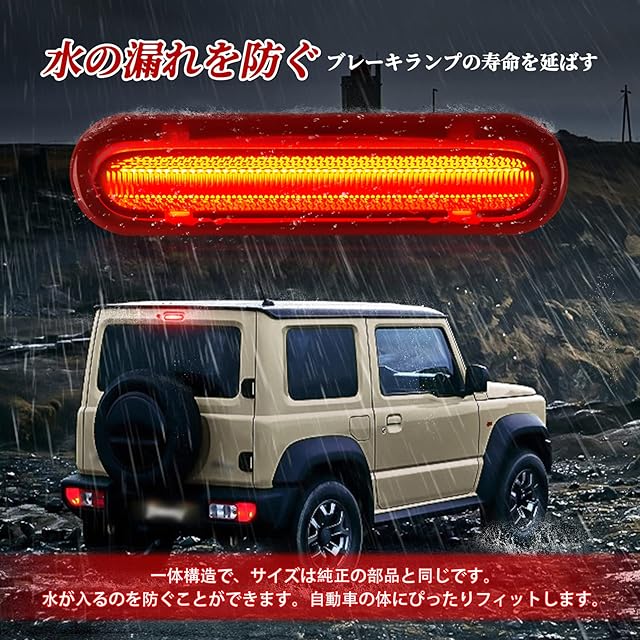 【純正交換タイプ】複雑の配線は一切要らず、純正のハイマウントストップを取り外し交換していただき、本製品をはかえるだけの簡単装着!防水ウレタンシート付いて、ジムニーシエラハイマウントストップランプはウレタンシートが付いていますので防水性があると思います。