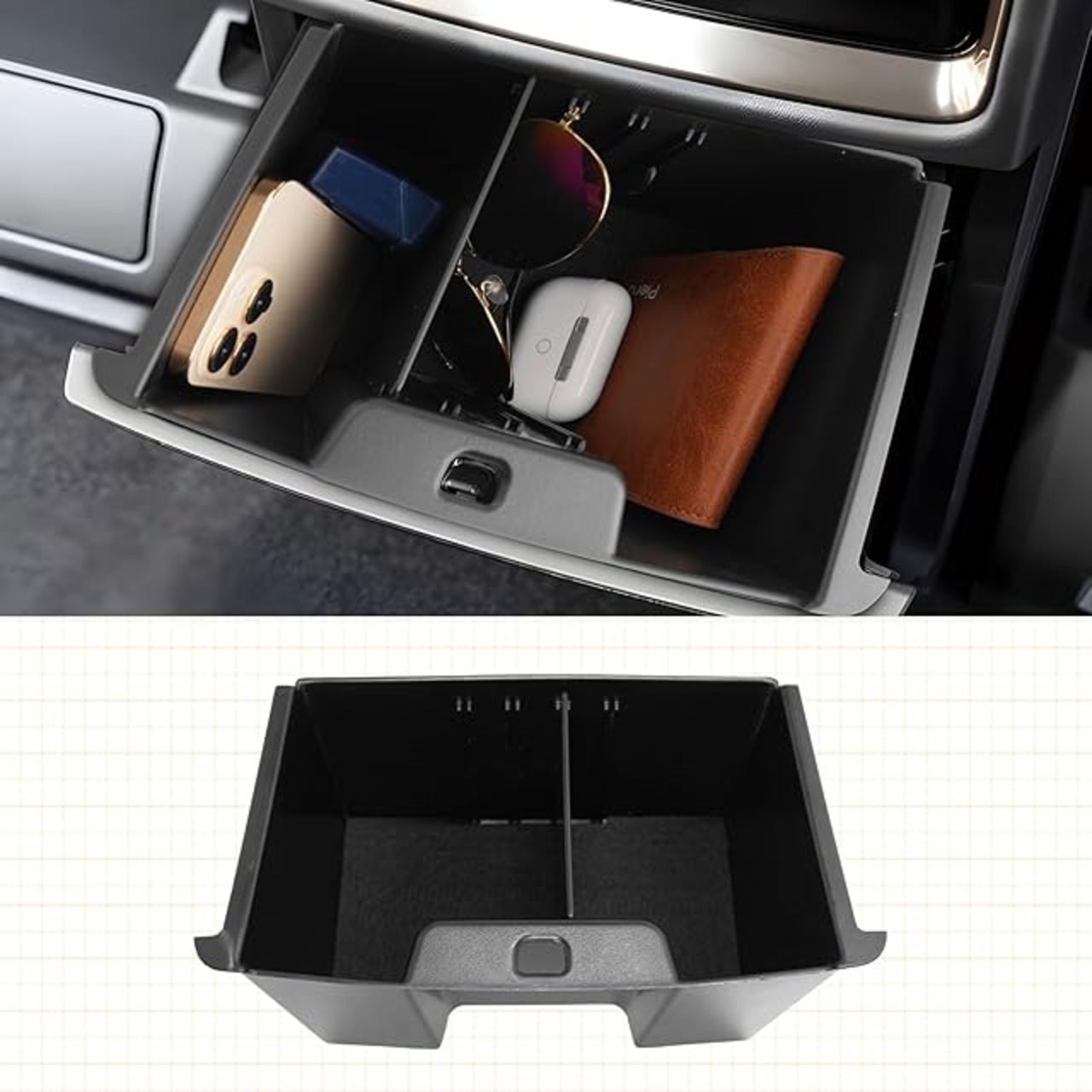 2.【可動式仕切り板】可動式仕切り板でスペースを自在に設計可能。小物が底に沈んで取り出しにくい従来の煩わしさを解消。縦方向の空間分割により、取り出しやすさと視覚的整然性を両立させたデザインで、車載スペースの実用性を47%向上。高級感あるインテリアを損なわずに、車内の散らかりストレスを根本からカット。