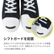 アッパー内部にはTAICHIオリジナルの防水・透湿素材"ドライマスター"を採用し、全天候での使用に対応。表地にはカジュアルなキャンバス地のほか、TECH WHITE・GRAY/BLACK・ALL BLACKには耐久性に優れ、メンテナンスも容易な合成皮革“Clarino"を、CORDURA BLACKにはナイロンの7倍もの強度をもつ耐久性に優れた繊維“CORDURA"を使用し、コーディネートの幅を広げました。ソールにはvibram社との共同開発により、ライディングに必要と考えられるグリップや排水性を考慮したハイグリップソールを採用。 また、かかと内側にはヒールガードを採用し、シューズ本体へのダメージを軽減。 タウンシューズの様なデザインながらもライディングに必要な機能を盛り込みました。
