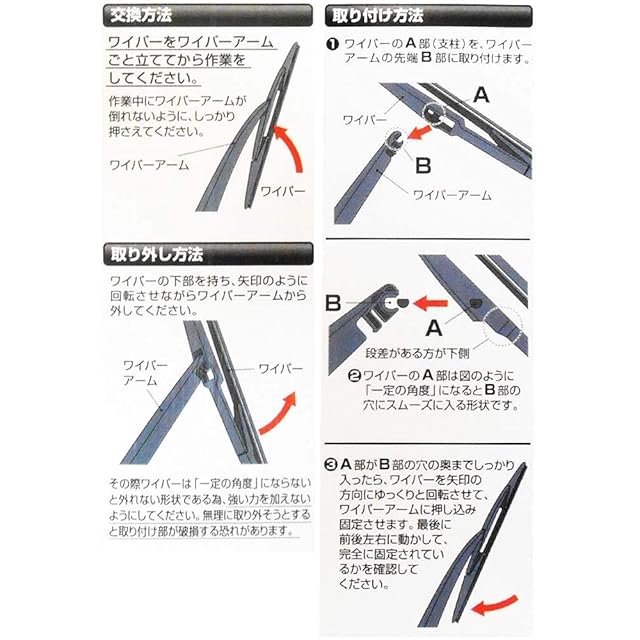【サイズ】運転席側:480mm×1本/助手席側:400mm(ゴム幅6mm)×1本/リア:350mm(ゴム幅6mm)×1本