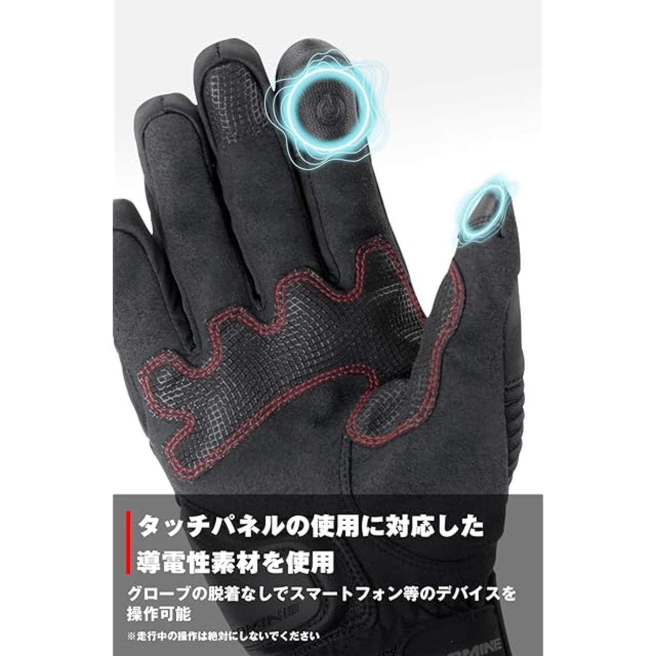 コミネ(KOMINE) バイク用 グローブ ウインターグローブ-カルタゴ ブラック/レッド XS GK-801 1010 秋冬春向け 防水 防寒 プロテクター ストレッチ素材