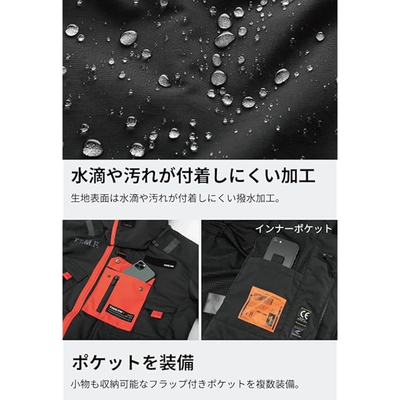 商品名:RSタイチ(RS TAICHI) バイクウェア ライディングジャケット 秋冬 防風 防寒 CEプロテクター内蔵 着脱インナー付属 モンスター オールシーズンパーカ RSJ726 BLACK/ORANGE S
