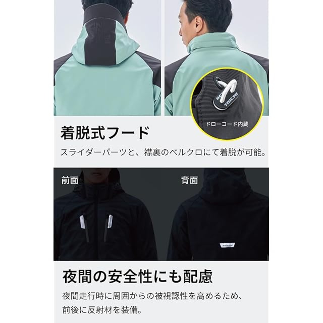 保温性と着心地に優れたソフトシェル生地を採用。フードは着脱式で、シーンやスタイルにあわせた着こなしが可能です。