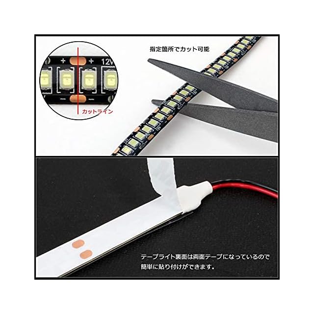 商品名:Kaito Denshi(海渡電子) LEDテープライト 車 12V 高密度 240LED/m 防水 車外 照明 常時点灯 正面発光 切断可能 イルミネーション 電飾 カスタム 1チップ 黒ベース 60cm 白色