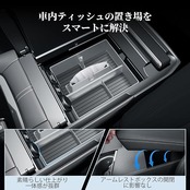 【収納スペースがアップ!】スマホやティッシュ、サングラスなどの小物を収納可能。滑り止め加工済みのラバーマットで、防塵・防キズ・カタカタ異音を減少し、使いやすくて綺麗な車内を実現します。広いアームレストボックスを2段収納スペースに増設し、ティッシュの置き場もスマートに解決。より便利で快適な車内空間を実現します。
