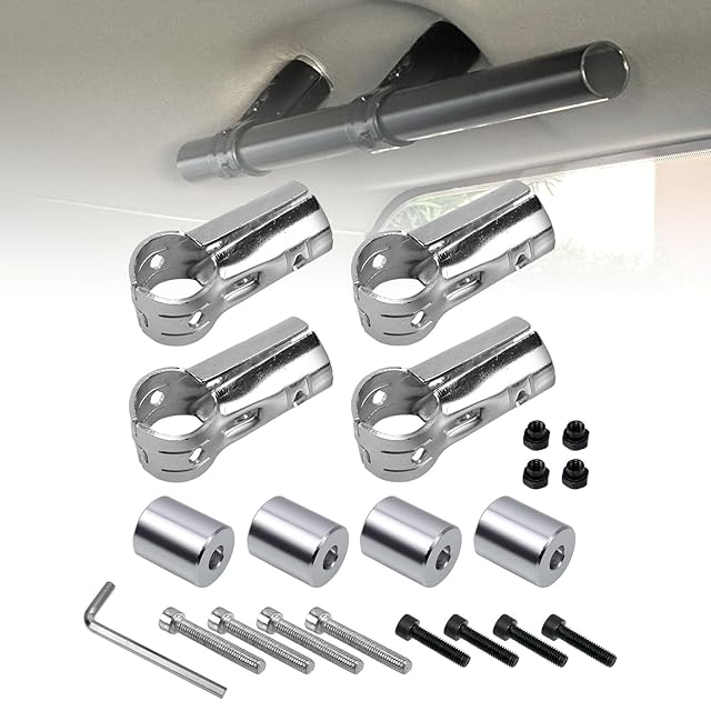 Jeyaic φ28イレクターパイプ用の車用ルーフキャリアバー用スペーシアパイプイレクターパイプアタッチメント。アルミ製アタッチメントで取り付け可能。アルミアタッチメントDIY製作で、車中泊、キャンプ、釣り、レジャーを快適に。NVANハイゼットカーゴなどに対応し、NSJ-1*4 (4) シルバー