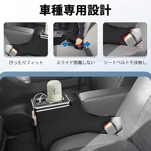 3.「抜群の収納力!!」: 大容量のアームレストボックスは車内のあらゆる小物を収納できます。 またドリンクホルダーは専用でついておりますので取り出しは必要ありません。いくつかの大容量の収納スペースを備え、ティッシュ、カードなどの色々な小物が収納可能だけでなく、ドリンクホルダーを増設し、ボトルなどの小物入れとしても大活躍。限られた空間を有効活用して、快適なドライブ空間を実現する。