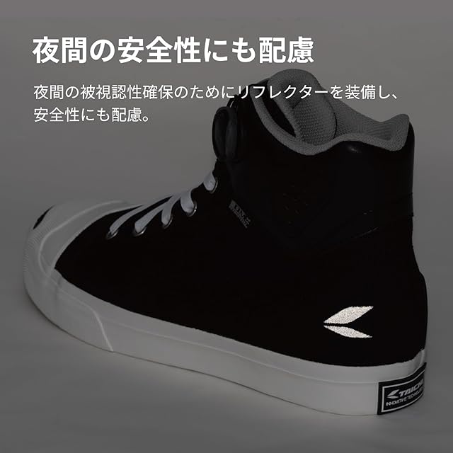 アッパー内部にはTAICHIオリジナルの防水・透湿素材"ドライマスター"を採用し、全天候での使用に対応。表地にはカジュアルなキャンバス地のほか、TECH WHITE・GRAY/BLACK・ALL BLACKには耐久性に優れ、メンテナンスも容易な合成皮革“Clarino"を、CORDURA BLACKにはナイロンの7倍もの強度をもつ耐久性に優れた繊維“CORDURA"を使用し、コーディネートの幅を広げました。ソールにはvibram社との共同開発により、ライディングに必要と考えられるグリップや排水性を考慮したハイグリップソールを採用。 また、かかと内側にはヒールガードを採用し、シューズ本体へのダメージを軽減。 タウンシューズの様なデザインながらもライディングに必要な機能を盛り込みました。