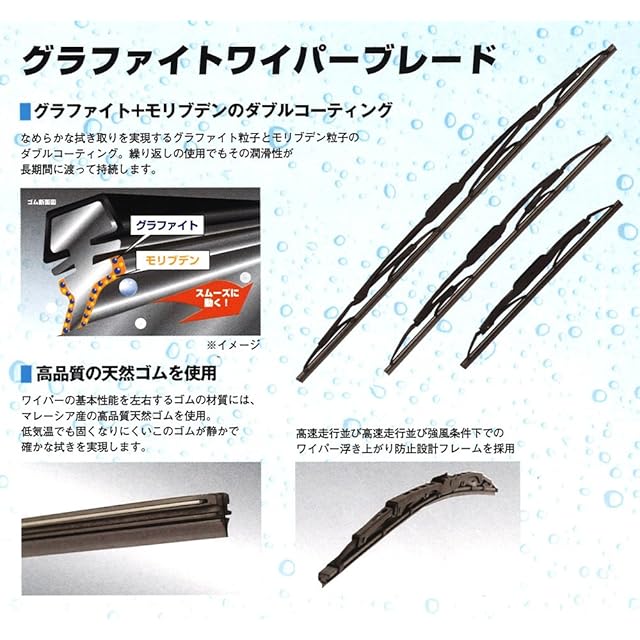 『Fesco フェスコ』ワイパーブレードは、<br> 欧州、北米メーカーにOEM供給する、ISO16949を取得したOEM製造メーカーとのブランドライセンス契約により、<br> 日本で企画開発された高品質ワイパーブレードメーカーです。<br><br> 【グラファイト+モリブデンのダブルコーティング!】<br> ビビリ、拭きムラ、筋状拭き残しの無い抜群の拭きで視界を確保!<br> 高品質の天然ゴムをベースとした、特殊配合成形ゴム(ノーマルラバー)に<br> グラファイト(炭素微粒子)二硫化モリブデン(MOS2)を二層コーティング!