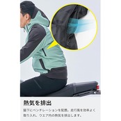 【熱気を排出】脇下にベンチレーションを配置。走行風を効率よく取り入れ、ウエア内の熱気を排出します。ダブルジッパー採用で部分的な開放も可能です。