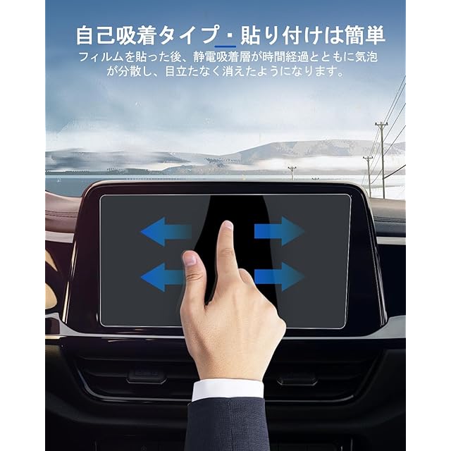【簡単に貼り付け】静電吸着層により、固定用シールなどのキットも付いていて、自動吸着できるので、初心者でも簡単に貼り付けられます。軽く押せば、自己吸着層で気泡も浮きもなくvw tロックナビ画面に溶け込んでいくように張り付きます。