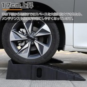 【170mm上り】17cmの上がりで、オイル交換や拭き取り、サンプライトの取り付けなど、大半の用途に簡単に対応できる車用スロープです。 また、17度の傾斜は、初めての方にもベテランの方にも、とても走りやすいと思います。