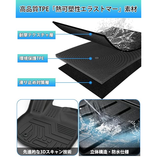 2.【高品質TPE素材】:摩擦性に優れたTPE樹脂素材を採用し、耐汚れと耐摩擦性を実現しました。3D立体構造のお掛けで車が運転している途中でも、飲み物などが溢れっても水やジュースなどはフロアマットの外への侵入を防止します。弊社のマットには防水性&耐摩擦性に優れた、変な匂いも無し、お手入れも楽々!