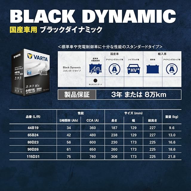 商品名:VARTA(バルタ) Black Dynamic 44B19L 国産車用バッテリー 充電制御車/標準車 <長期・メンテナンスフリー> 40B19L互換
