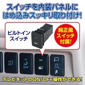 走行中は映像が映らない純正ナビ。このテレビキットシリーズがあれば、走行中でもテレビ/DVDが楽しめます。純正風スイッチで目立たずスマートに取り付け。ビルトインスイッチ寸法(TSW016):W22.5mm×H22.5mm×D50mm