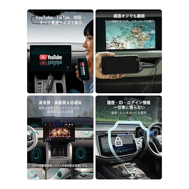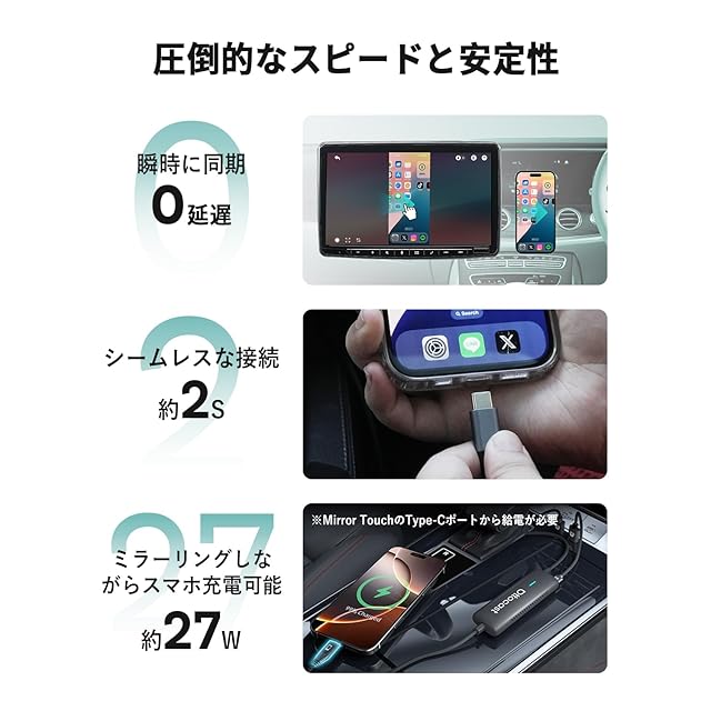 商品名:オットキャスト 公式 OTTOCAST Mirror Touch 2025 新型 ミラーリング スマホを大画面に映す 双方向ミラーリング ワイヤレスCarPlay 【技適取得済み品】