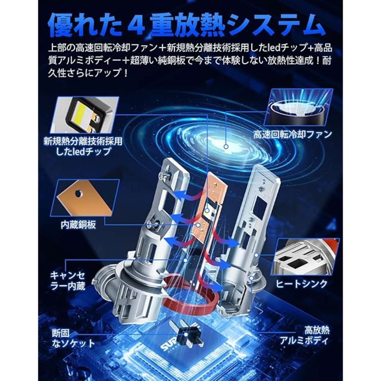 商品名:SUPAREE h11 led ヘッドライト 車検対応 熱分離高光効LEDチップ 30000lm h8 led フォグ 爆光 6500K ホワイト h16 led フォグランプ 車用 9-16V 四重放熱 静音ファン ハロゲンサイズ IP68防水