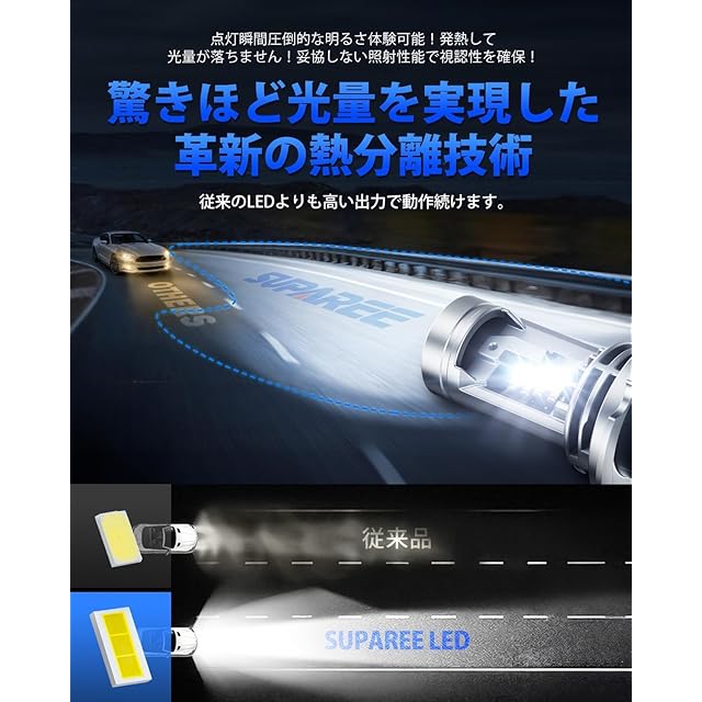 商品名:SUPAREE h4ledヘッドライト 爆光 車検対応 熱分離高光効LEDチップ h4 led ヘッドライト 6500K 30000lm hi/lo切替 車用 9-16V 四重放熱 静音ファン ハロゲンサイズ