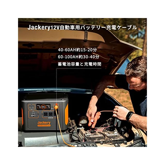 【Jackeryポータブル電源対応】40〜60Ahバッテリーでは15〜20分、60〜100Ahバッテリーでは30〜40分で完全に充電された後、自動車が起動します。Jackeryポータブル電源 1500/1000/708/700/400/240のみご使用が可能となっておりますのでご注意ください。