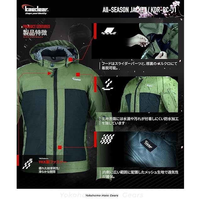 商品名:[Kaedear] カエディア バイク ジャケット バイク用 プロテクター ライディングジャケット パーカー 春夏秋冬 撥水 オールシーズン リップストップ生地 エアーベンチレーション オリーブ Yokohama Moto Gear KDR-RC-J1 (JP, アルファベット, XL, オリーブ)