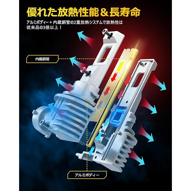 【50,000時間の寿命】: 航空用アルミニウムボディ、最高熱伝導効率の銅管を内蔵、h16 led は2重放熱システムになって、空気への放熱効率は従来品よりもっと速くてしています。AUXITO H9 LEDは50000時間の寿命を提供し、頻繁な交換の必要性を低減します。これにより、長期的にコストを削減し、ライトの寿命が延びることで安心感を得ることができます。