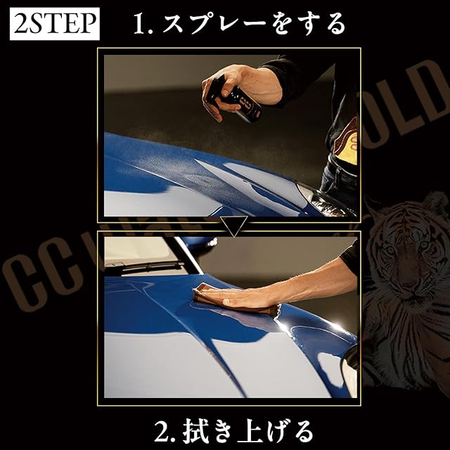 ボディーにスプレーして拭くだけで圧倒的な艶感・高撥水が得られる、CCウォーターゴールドの性能をさらに高めたプレミアモデルのコーティング剤です。