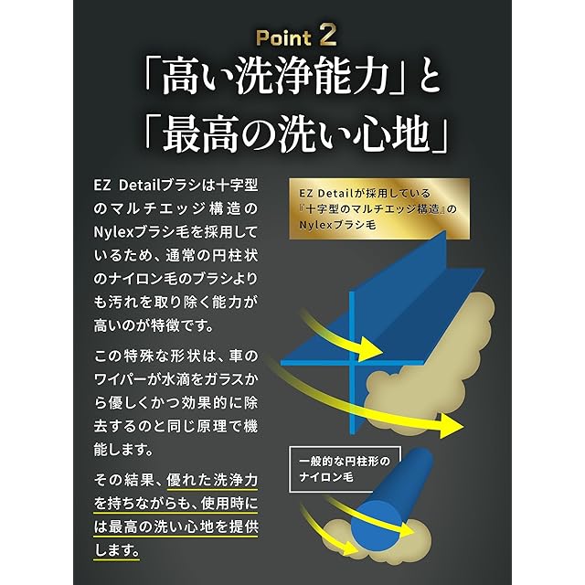 【プロ仕様のクリーニングブラシ】EZ Detailブラシは、隅々まで簡単にアクセスでき、表面に傷をつけずに汚れをしっかり除去します。