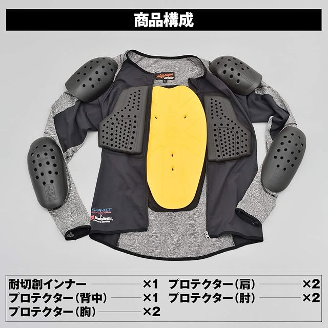 【付属プロテクター】SAS-TEC製:胸(CEレベル1) ひじ(CEレベル2) 肩(CEレベル2) 背中(CEレベル1)