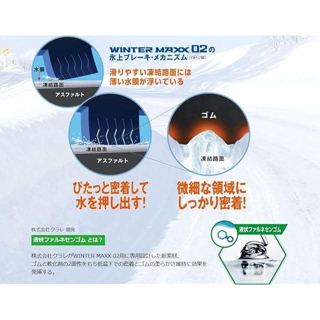 冷えても柔らかい「液状ファルネセンゴム」を採用で、凍結路面により密着! だから、しっかり止まる