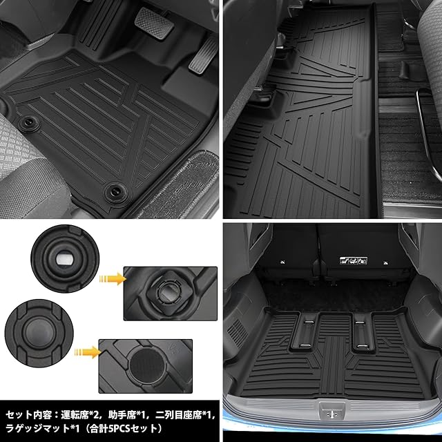 【車種専用設計でピッタリフィット】■車種専用設計、マットのズレ防止。運転席は純正ストッパーに対応するホール付きます。それに、助手席は留め具裏面にはマジックテープ付きます。■アクセルペダルとブレーキペダルに干渉しません。■座席のスライドレールに干渉しません。抜群フィッティングします。こだわり車種専用設計のため、車内に隙間なくフィットします。