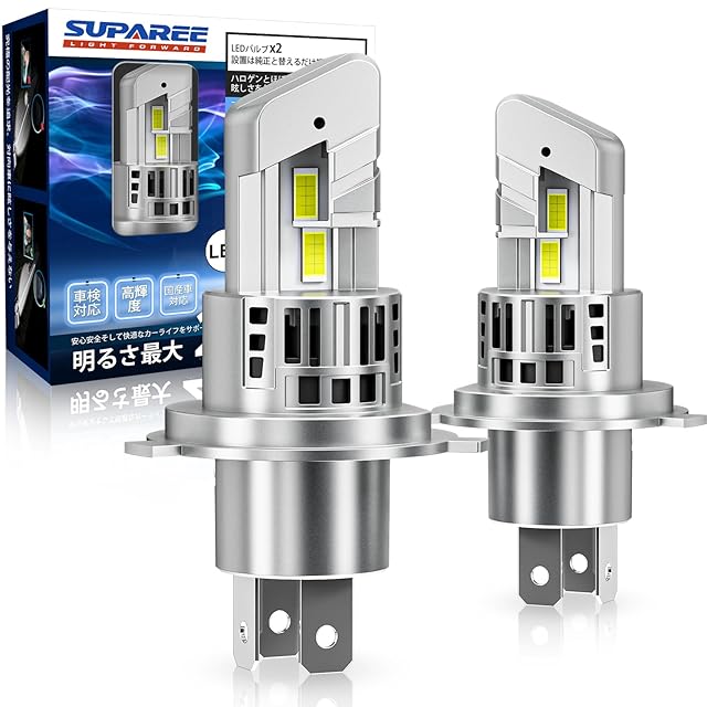 【新規最強輝度】一体型の明るさは暗くて、ハロゲンでも足らない?ヘッドライトのサイズは大きくて、取付は専門業者に頼まなくちゃ?取付後、ラジオは雑音ばかり、車コンピューターもエラー出ている?。SUPAREE最新のh4 led ヘッドライト製品は以上の問題全て解きました。正真正銘のハロゲンサイズ、コンパクトの上で、本社伝統的な爆光を引き続けました、25W*2のハイパワーで、32連高光効のLEDチップを搭載したのため、18000lmの明るさに出来ます、車検基準より8倍を越えて、10倍のハロゲン明るさを相当!