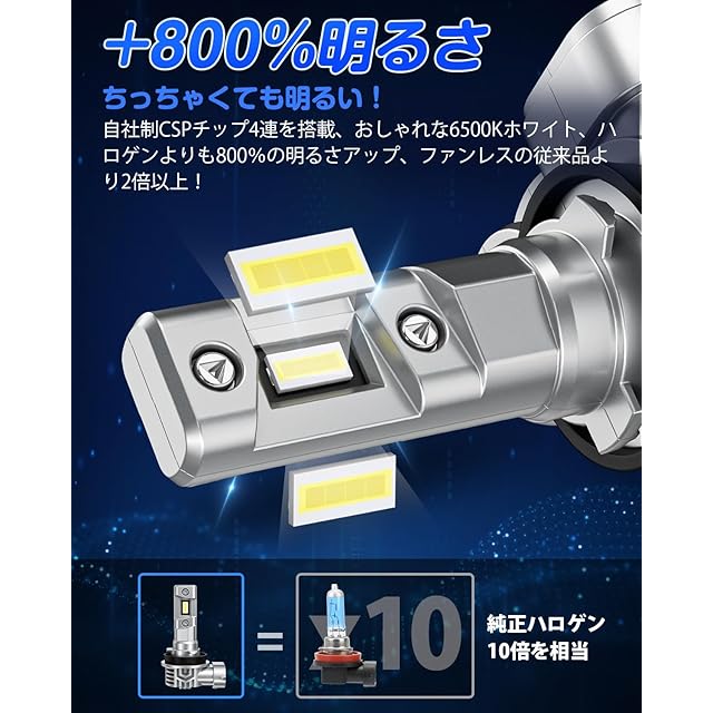 『業界最強LED フォグランプ H8 H11 H16 』ハイパワーモデルのサイズが大きくて、取付大変だった?コンパクトモデルは暗くて、夜道を全然照らせなかった?放熱ファンがうるさくて、車の中にも聞ける?本社最新のH11 LED ヘッドライト ファンレス製品はそのような面倒な問題は全部解決をしました。完全ハロゲンサイズで、スペースが狭い車でもポン付け可!コンパクトの上で、スパリー社のH11 LED ヘッドライトの伝統的な爆光を引き続けました、20W*2のハイパワーで、高光効のLEDチップを搭載したのため、14000lmの明るさに出来ます、本社M4モデルより明るさは2倍以上、K23モデルは3倍以上で、同じファンレス従来品よりも遥かに越えています。※ご注意:本製品は2025年2月より、パッケージの仕様をリニューアルする予定です。新旧の梱包はランダムにされますので、どのような梱包箱が届いても間違いありませんのでご安心く
