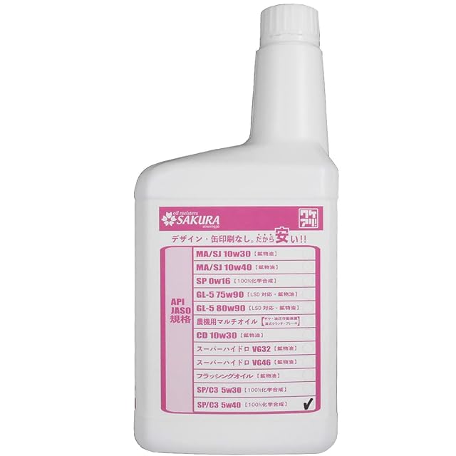 【ワケあり エンジンオイルの特徴】<br>無地缶(ペイントデザイン無し)にラベルを貼り、オイルを充填しています。ペイント無しの無地缶なのでお安く提供しています。<br><br>【品質規格】ACEA:C3 / API:SP <br>【粘 度】 SAE:5W-40<br>【ベースオイル】 化学合成油100%<br>【用途】<br>ACEA C3規格に相当する高性能エンジンオイルは、ガソリンターボ車、ディーゼル車、欧米車まで幅広く使用可能。<br>【ACEA規格:C3】<br> ACEA C3規格を満たしておりヨーロッパ規格のオイルを使用するディーゼル車にも使用可能です。<br>【API規格:SP】<br> SP規格に求められる省燃費性、LSPI(低速プレイグニション)抑制、スラッジ抑制、チェーンウエア機能も備えています。<br>【メーカー情報】<br>株式会社櫻製油所は1936年創業の<br>創業80年を超える大阪の老舗潤滑油専門メーカーです。<br>メーカーURL https://www.sakuraseiyusho.com/index.html