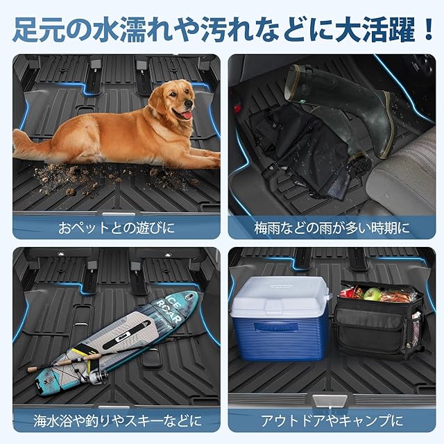 【3Dマット・簡単掃除】:汚れが気にならず、掃除機や水拭きで簡単にお手入れできるので、車内をいつでも清潔に保てます。さらに、従来の絨毯マットとは異なり、弊社のSIN新型フリード防水マットは縁高の3D立体構造を採用しており、泥や水の侵入をしっかり防ぎます。汚れや水滴が気になる方に最適で、日常使いはもちろん、アウトドアシーンや色々なシーンでも活躍するフリード立体マットです。