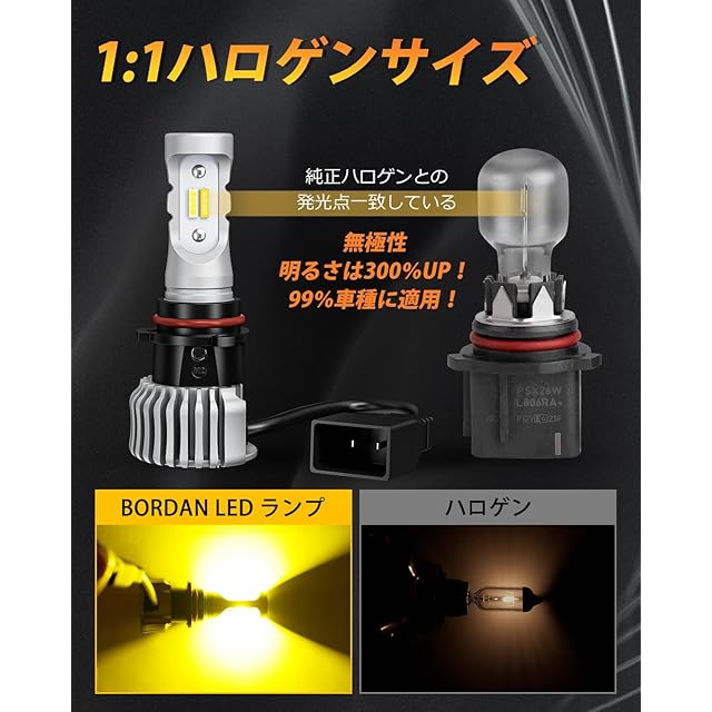 【2023爆光モデル&ノイズ防止 】夜道暗くて、運転危なかった?カッドラインは出てず、車検通らなかった?サイズが合わない、取り付けできなかった? BORDAN psx26w led 爆光モデルは従来品より、明るさ300%アップします。プラスチック製コンセント部分の硬化材料を採用したので、取り付ける時の破損に心配なし!スイッチを繰り返すだけでホワイトとイエローに切り替えます。6000kのホワイトは晴れや曇りの日に最適、3000kのイエローは雨や雪の日に適してます。 天候や気分に応じて簡単に色味を変更できる!両面抜群の視認性の高品質のCSP1860チップを採用しています、一つのled フォグランプ合計16SMDで、ハロゲンより大幅に視認性を高めています。夜間の走行が非常に楽になり、安全に運転しています!ノイズ防止キャンセラーが内蔵して、迷惑なラジオのノイズはありません。安心・安全なカーライフを送りましょう!