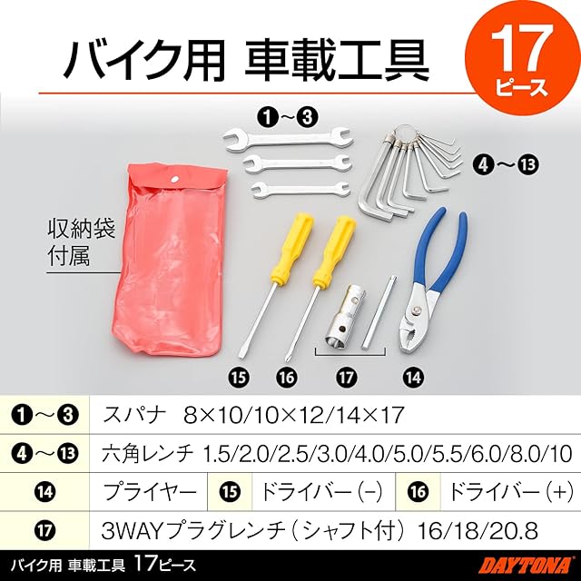 デイトナ(Daytona) バイク用 工具 車載ツール 17ピース 78881